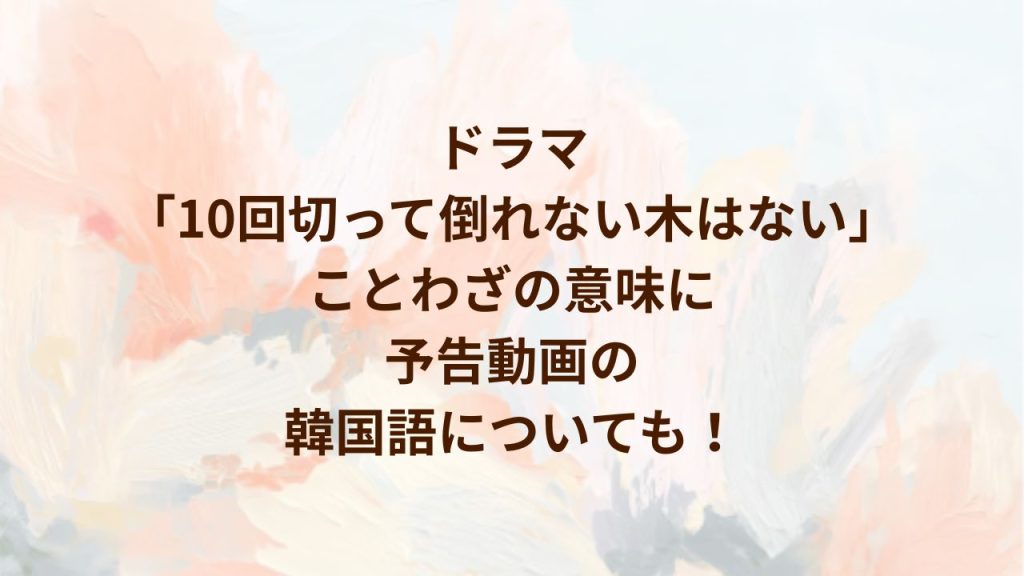 志尊淳さんが主演するドラマ「10回切って倒れない木はない」が、4月からスタートします! 韓国語のことわざがタイトルになっていて、そのことわざの意味や韓国語について気になっている方が多いですね。 なので、この記事ではドラマ「10回切って倒れない木...