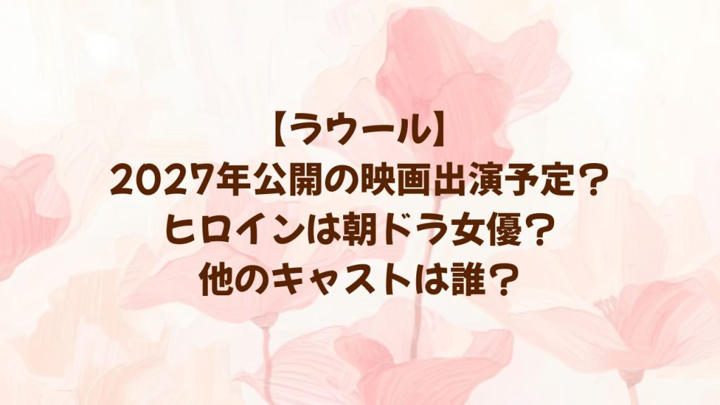 ラウールの映画出演予定2027年は?ヒロインは朝ドラ女優?他のキャストは誰?
