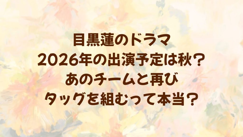 目黒蓮のドラマ2026年予定は秋?あのチームと再びタッグを組むって本当?